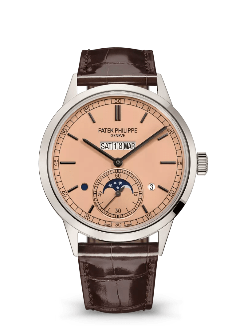 Gümüş opalin, beyaz altın uygulanmış Breguet rakamları. 18K altın kadran plakası. Siyaha boyanmış sarı altın armut biçimli kollar.