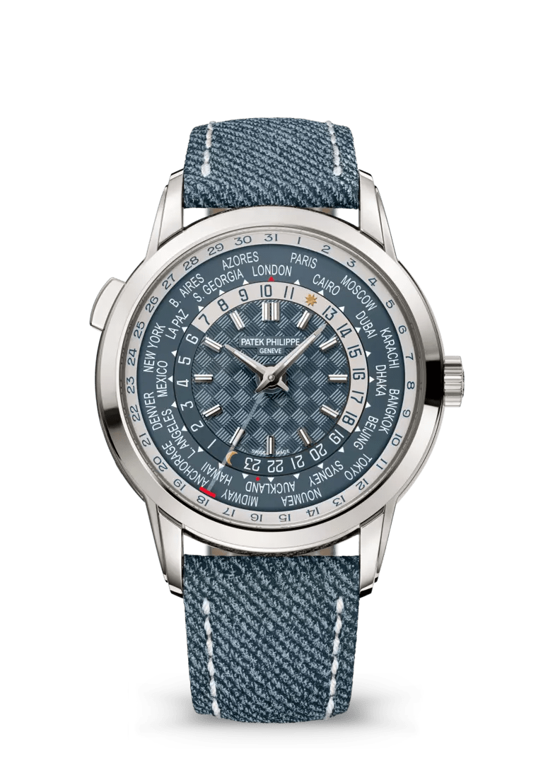 Güneş patlaması mavi-gri, beyaz altın uygulanmış rakamlar, beyaz lüminesans kaplama. Yerel zaman ibresi: beyaz lüminesans kaplamalı mavi beyaz altın kılıç stili. Ev zamanı ibresi: beyaz altın iskeletleştirilmiş kılıç stili, beyaz vernikli.