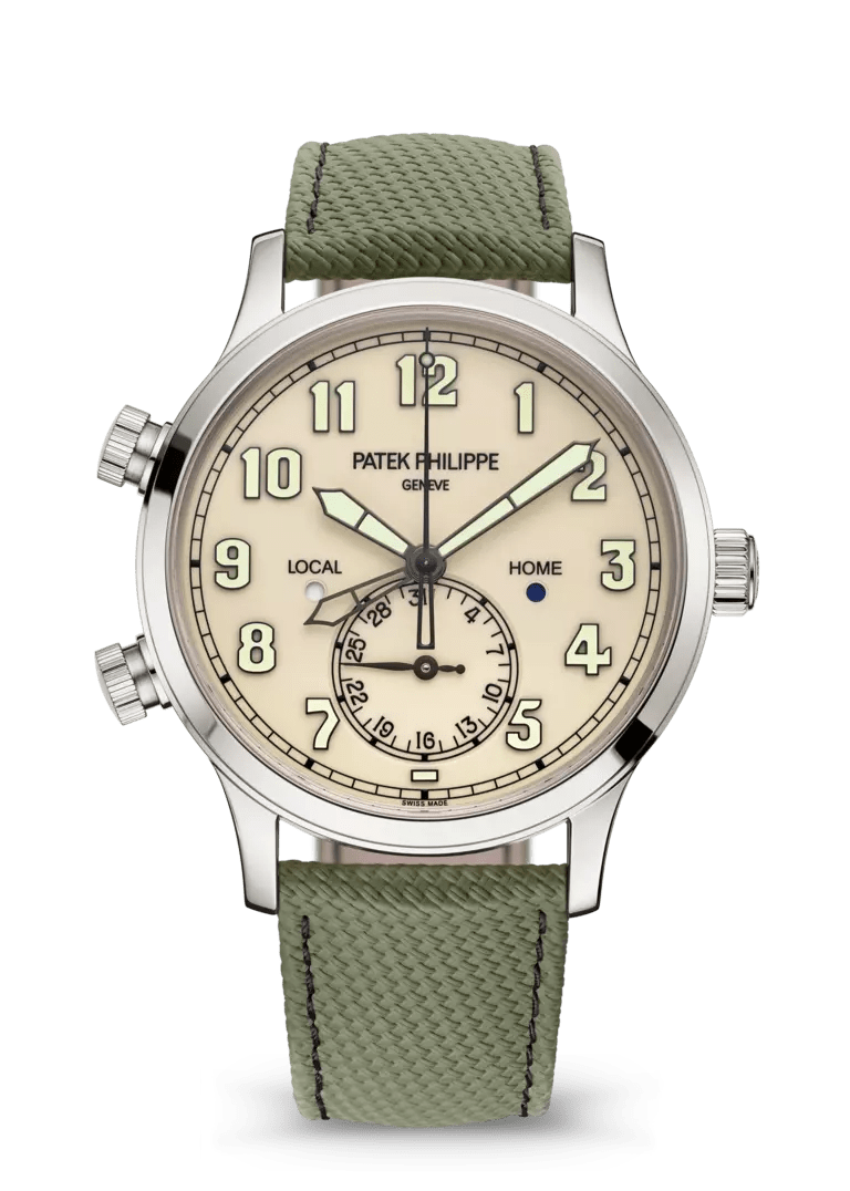 Siyah degradeli kenarlı sunburst kahverengi, beyaz lüminesans kaplamalı gül altın uygulanmış rakamlar. Yerel zaman ibresi: beyaz lüminesans kaplamalı gül altın kılıç stili. Ev zamanı ibresi: beyaz altın iskeletleştirilmiş kılıç stili, beyaz vernikli.