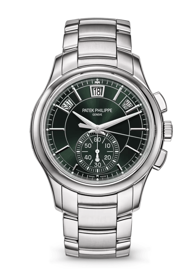 Mavi vernikli, beyaz altın uygulanmış, lüminesans kaplamalı rakamlar. Échelle tachymétrique. Beyaz altın şırınga biçimli, lüminesans kaplamalı kollar.