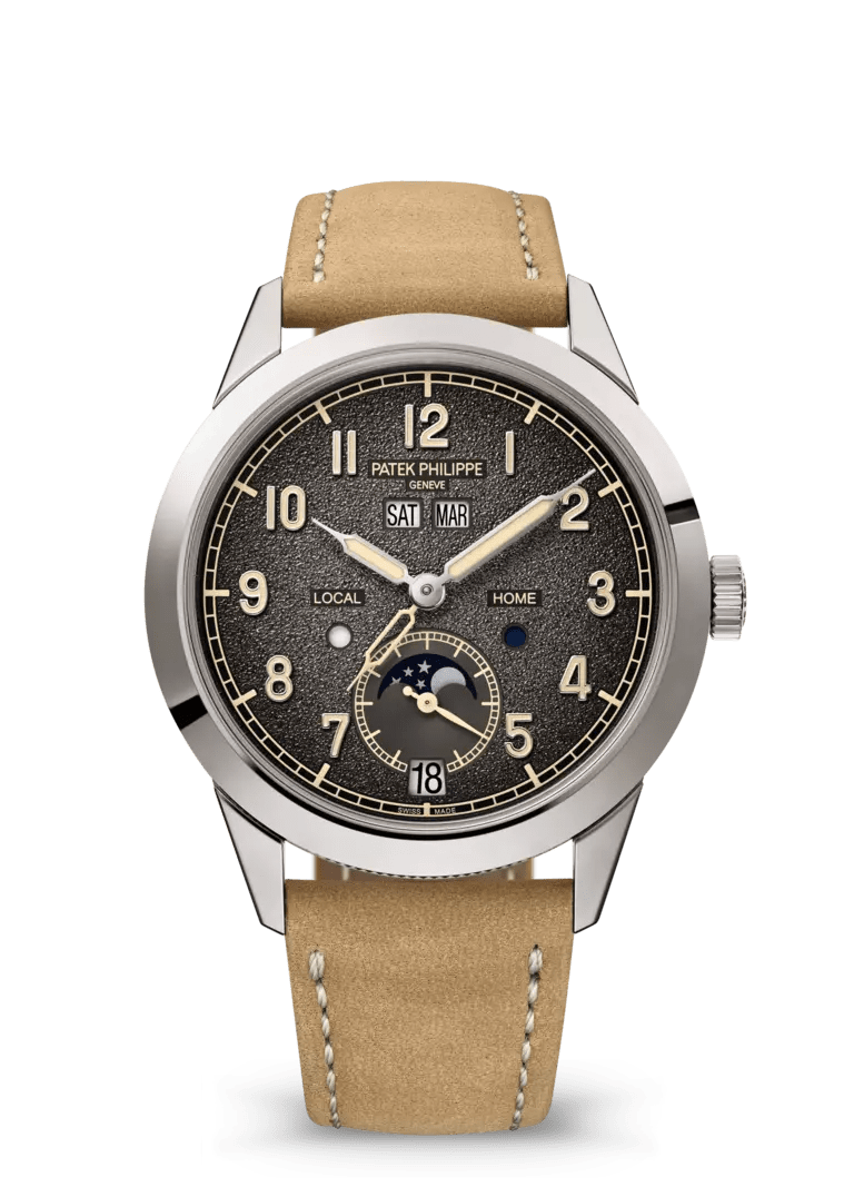 Siyah degradeli kenarlı dokulu mavi, beyaz lüminesans kaplamalı beyaz altın uygulanmış rakamlar. Beyaz lüminesans kaplamalı beyaz altın şırınga şeklindeki kollar.
