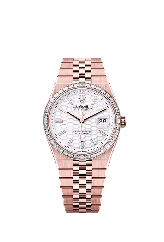 Dayanıklılığın zaferi Bu 18 karat sarı altın Oyster Perpetual Cosmograph Daytona, parlak yeşil ve altın rengi kadranı ve Oyster bileziğiyle birlikte, işlenmiş takimetrik ölçekli 18 kt sarı altın çerçeveye sahiptir.
