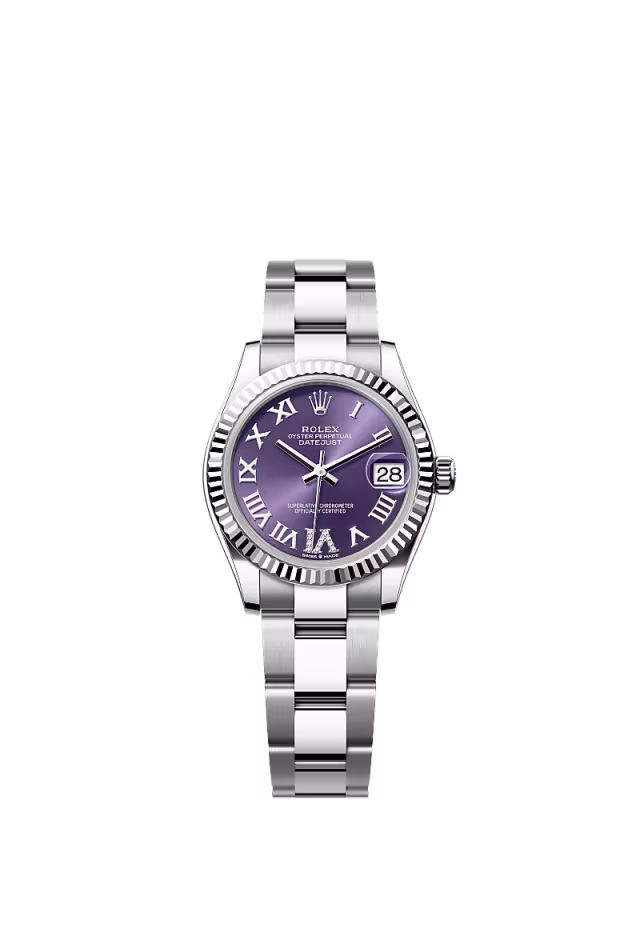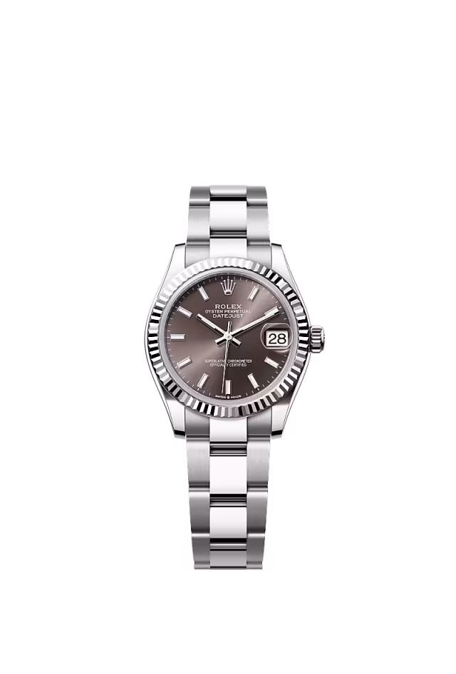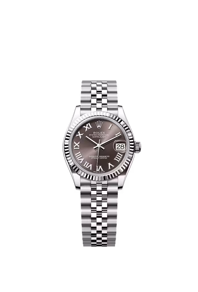 Her tarih özel bir gün Bu Oystersteel çelik ve beyaz altın Oyster Perpetual Datejust 31, pırlantalı koyu gri kadrana ve Oyster bileziğe sahiptir.
