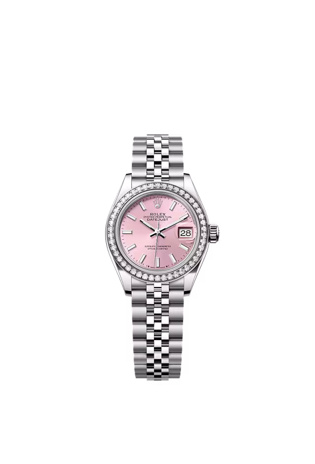 Lady-Datejust Oyster, 28 mm, Oystersteel çelik, Everose altın ve pırlanta