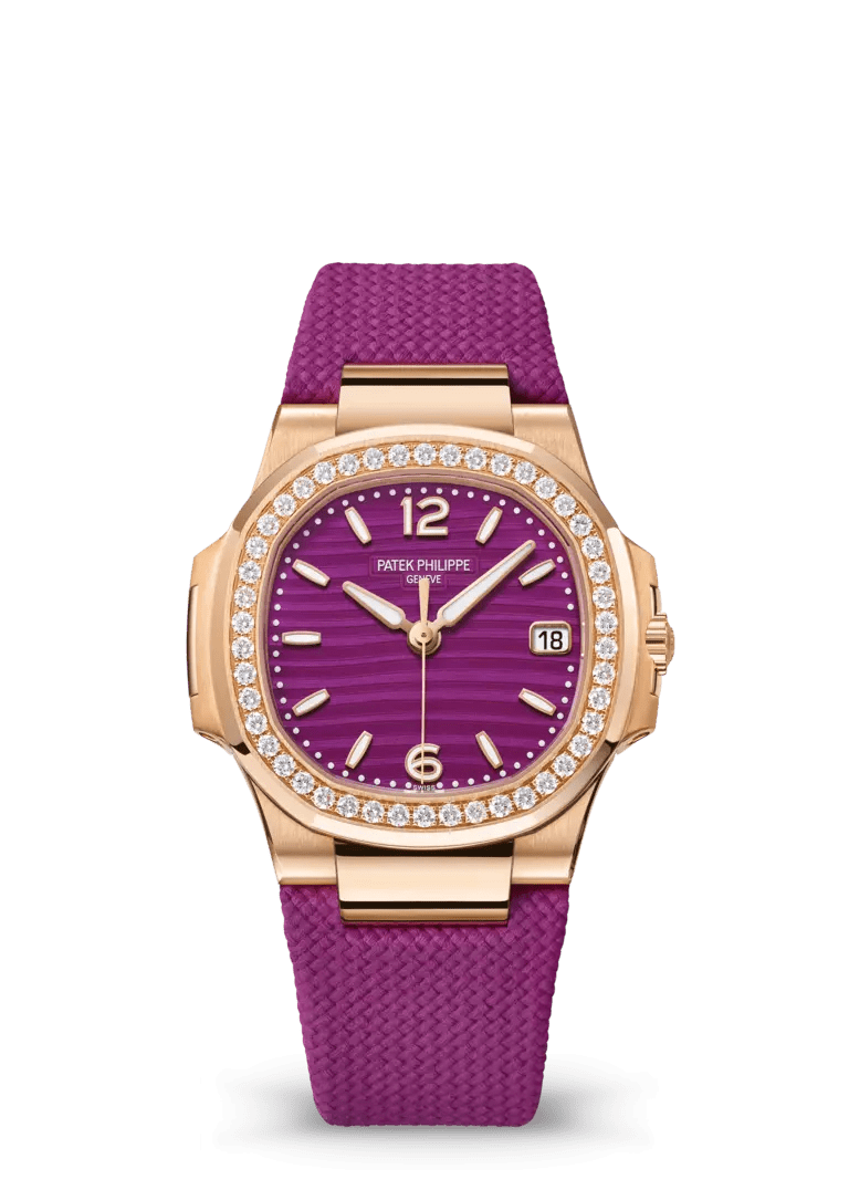 Gümüş opalin, "dalga" deseni, beyaz lüminesan kaplamalı gül altın uygulanmış rakamlar ve saat işaretleri. Beyaz lüminesan kaplamalı gül altın alfa tarzı kollar.