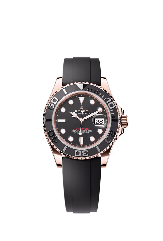 Rotadan sapmamak Oysterflex bileziğiyle 18 kt Everose altın Oyster Perpetual Yacht-Master 40.