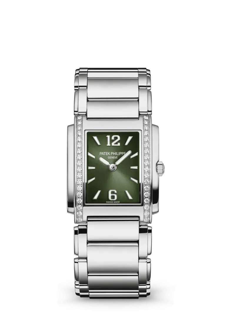 Sunburst mavi, beyaz altın uygulanmış rakamlar ve beyaz lüminesans kaplama. Beyaz altın yuvarlatılmış baton tarzı kollar ve beyaz lüminesans kaplama.