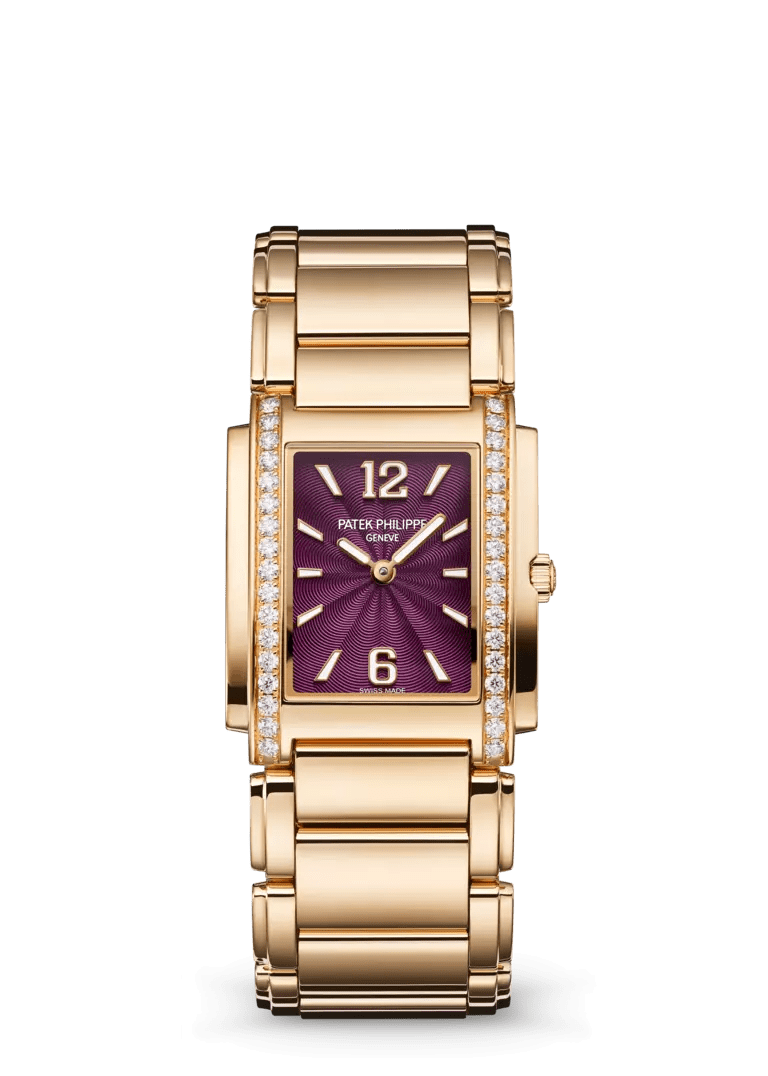 Güneş patlaması kahverengi, beyaz lüminesans kaplamalı gül rengi altın uygulanmış rakamlar. Beyaz lüminesans kaplamalı gül rengi yuvarlak baton tarzı kollar.
