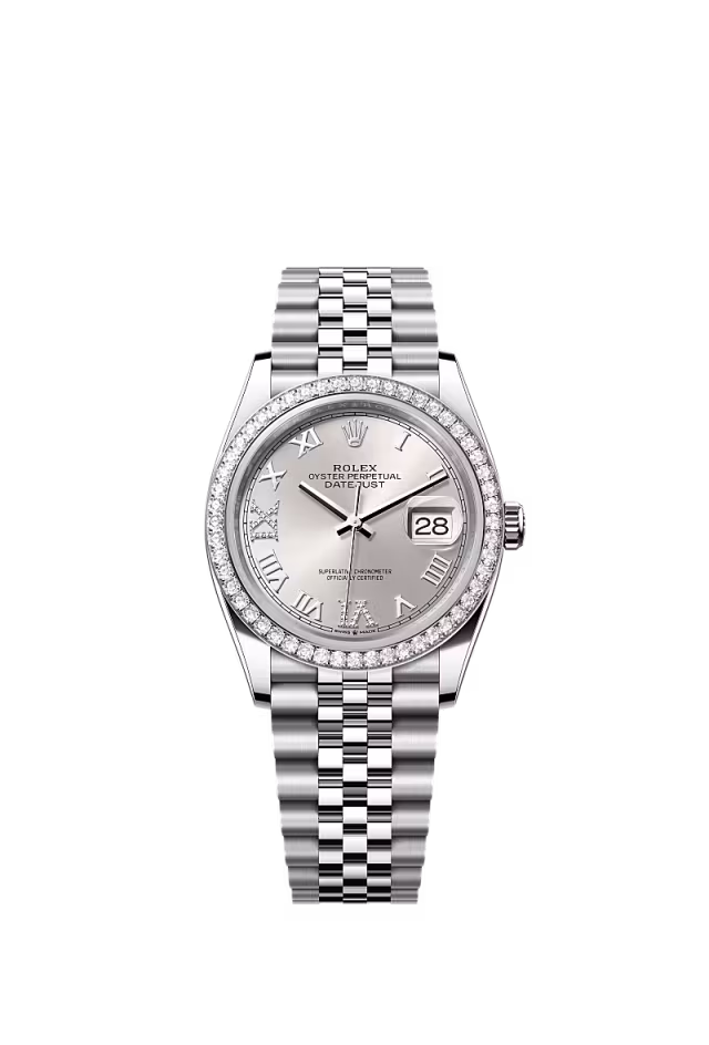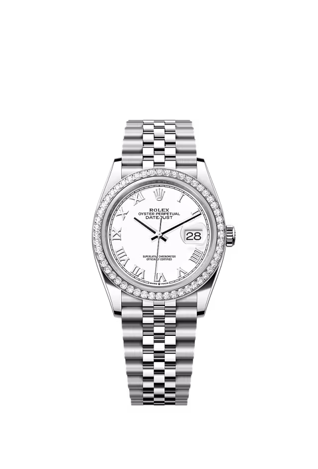 Datejust 36 Oyster, 36 mm, Oystersteel çelik, beyaz altın ve pırlanta