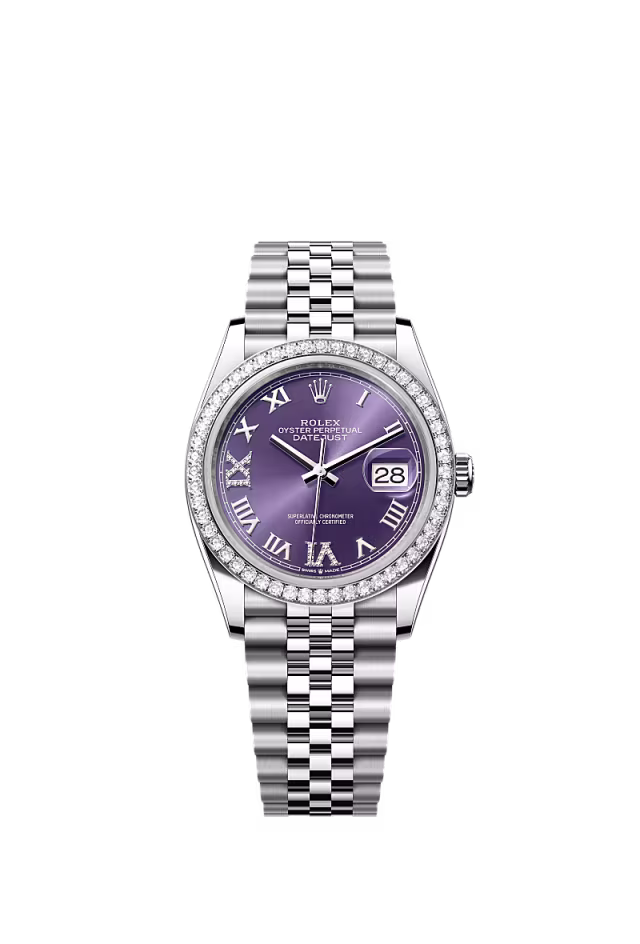 Her tarih özel bir gün Bu Oystersteel çelik ve beyaz altın Oyster Perpetual Datejust 36, pırlantalı parlak mavi kadrana ve Oyster bileziğe sahiptir.