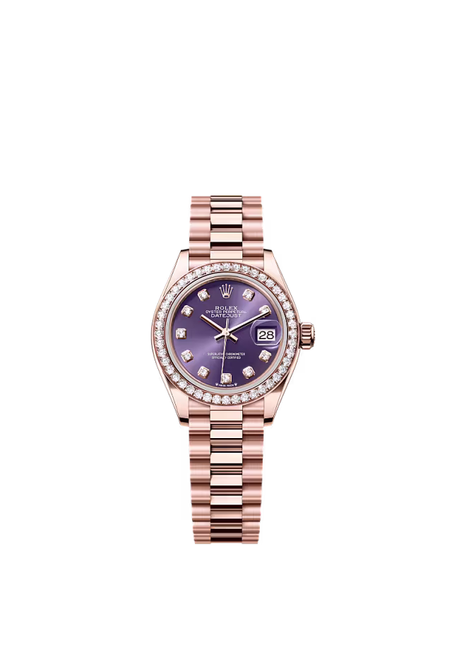 Zarif güzellik Bu 18 kt Everose altın Oyster Perpetual Lady-Datejust, çikolata rengi kadrana ve Jubilee bileziğe sahiptir.